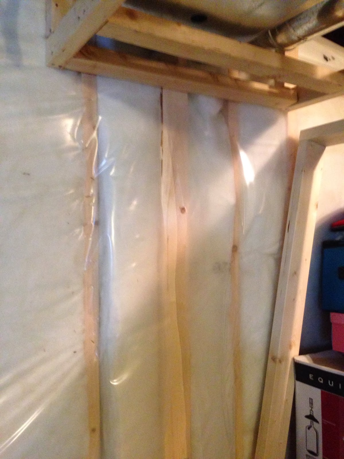 I puttered around the basement the last few days of our holiday, and finished up framing the walls and bulkheads. I am putting two pocket doors that will open between the rec room and the bedroom. We did this in our last house's basement, and really liked the flexibility it created in the space. The kids toys can be pushed through the doors into the bedroom, and the doors closed, creating a child-free entertaining space. Or, more likely, we can open the doors and the kids can colonize both spaces. We are putting in doors with opaque glass to let some of the light transfer from room to room, as well.